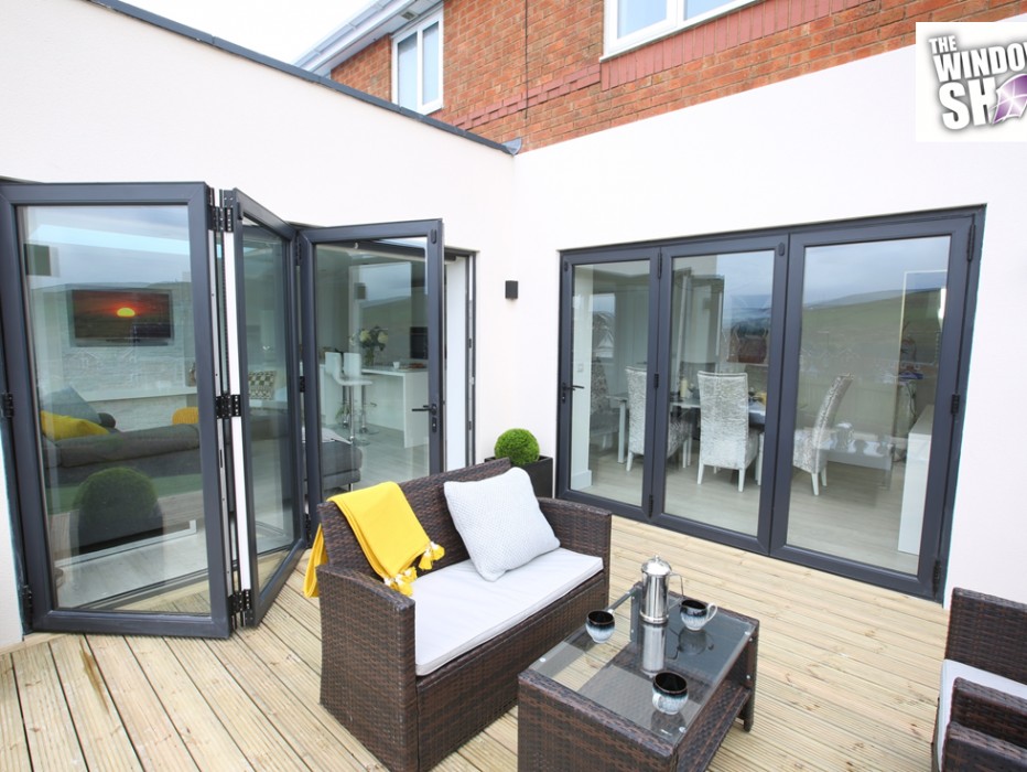 Anthracite Grey External / Anthracite Grey Internal. BiFolding Doors on a freshly rendered property. Looks great doesn't it!