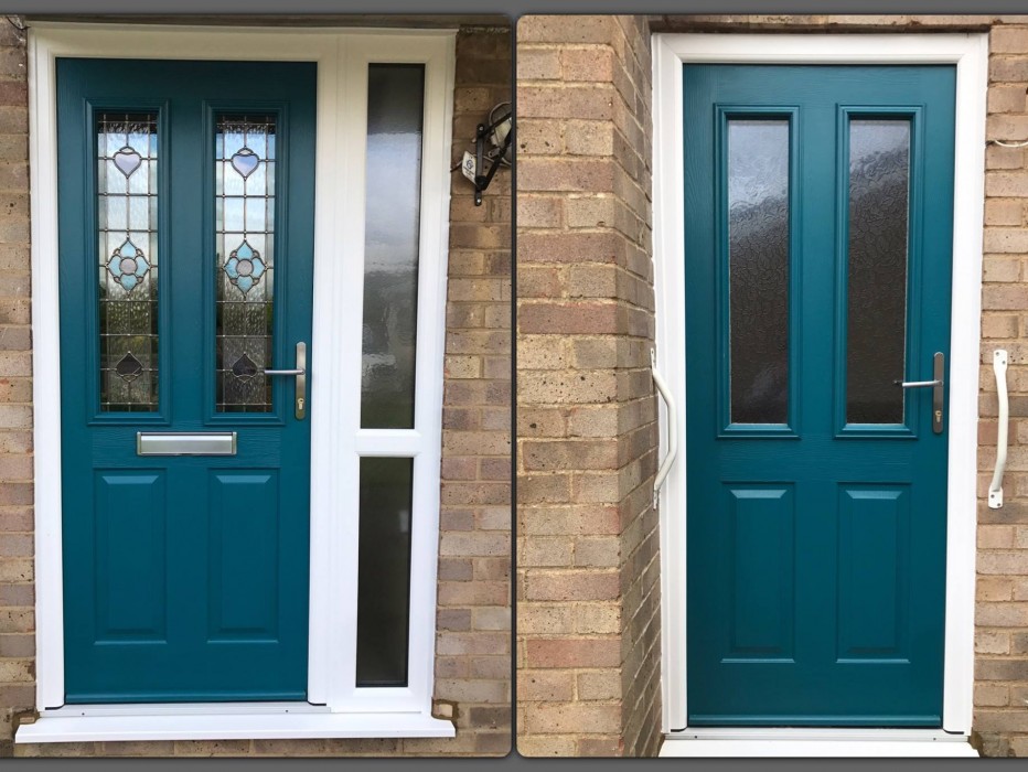 Another beautiful Solidor Installation in one of my favourite colours, the 'Peacock Blue' Ludlow Glazed Design. Bevelled Glass for the front door and obscure glass on the back door. Brushed Chrome Handle and Letter Plate. We install composite doors in Rushden, Wellingborough, Sharnbrook, Bedford and Bedfordshire Villages, Olney, Milton Keynes and Northampton.